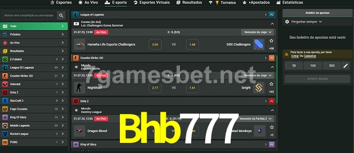 O Bhb777 oferece uma grande seleção de opções de apostas em e-sports com probabilidades competitivas